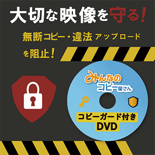 ● DVD-VIDEOディスクに対してコピーガードをかけます。DVD-VIDEOとは、DVDプレイヤーで再生するためのフォーマットを指します。PDF、avi、wmv、mp4、doc、xlsx、jpgなどのファイルデータには設定できません。