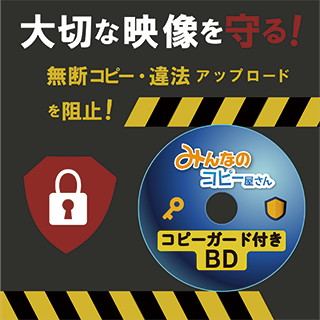 ● BDMV形式のディスクに対してコピーガードをかけます。家庭用レコーダーで作るBDAV形式には設定できません。また、PDF、avi、wmv、mp4、doc、xlsx、jpgなどのファイルデータや、AVCHDディスクには設定できません。